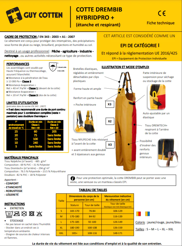 COTTE A BRETELLES DREMBIB HYBRIDPRO+ GUY COTTEN : POUR AFFRONTER LES PIRES CONDITIONS