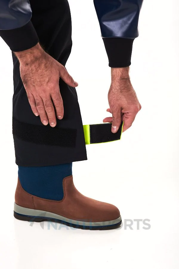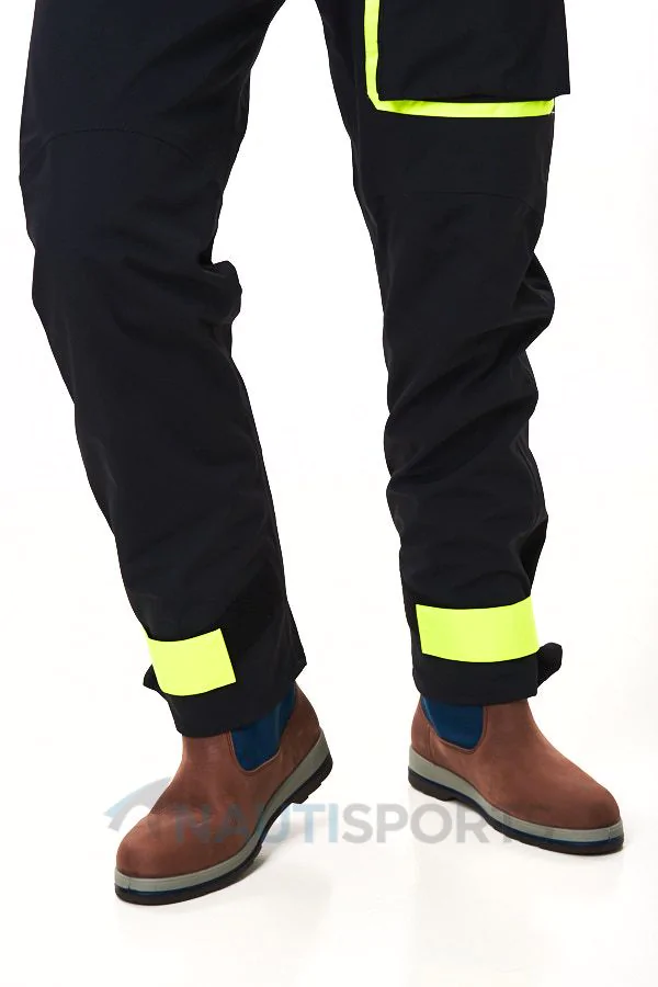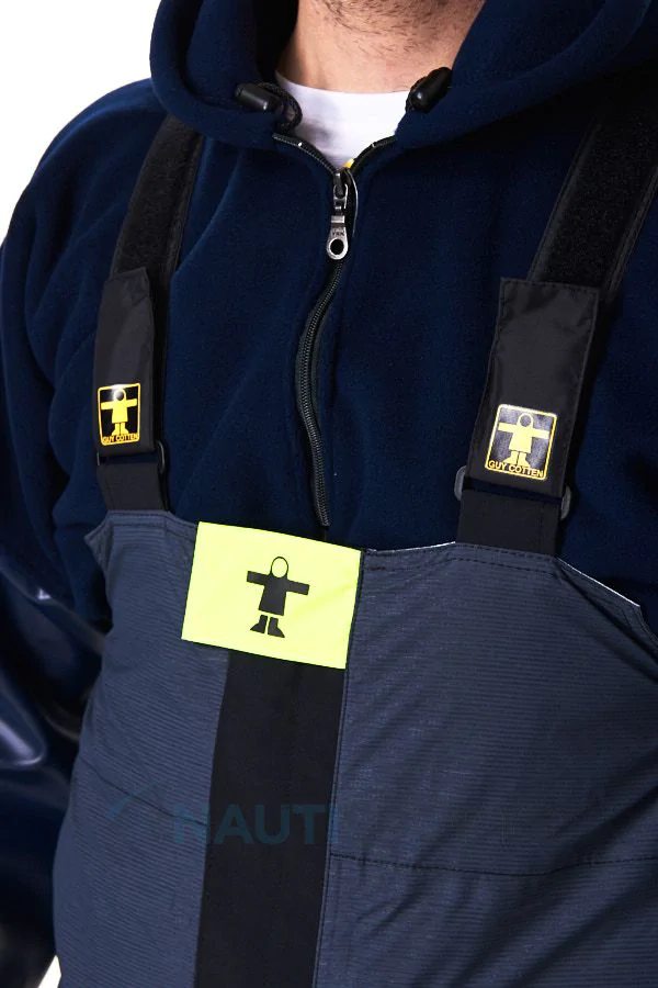 Certaines zones étant plus sollicitées que d’autres en mer, Guy Cotten a pensé à renforcer sa salopette de quart Nunki au niveau des chevilles et de l’assise pour une plus grande résistance à l’abrasion. Ces zones adoptent ainsi la technologie avec le tissu Dremetch+, tissu le plus performant de la marque bretonne.