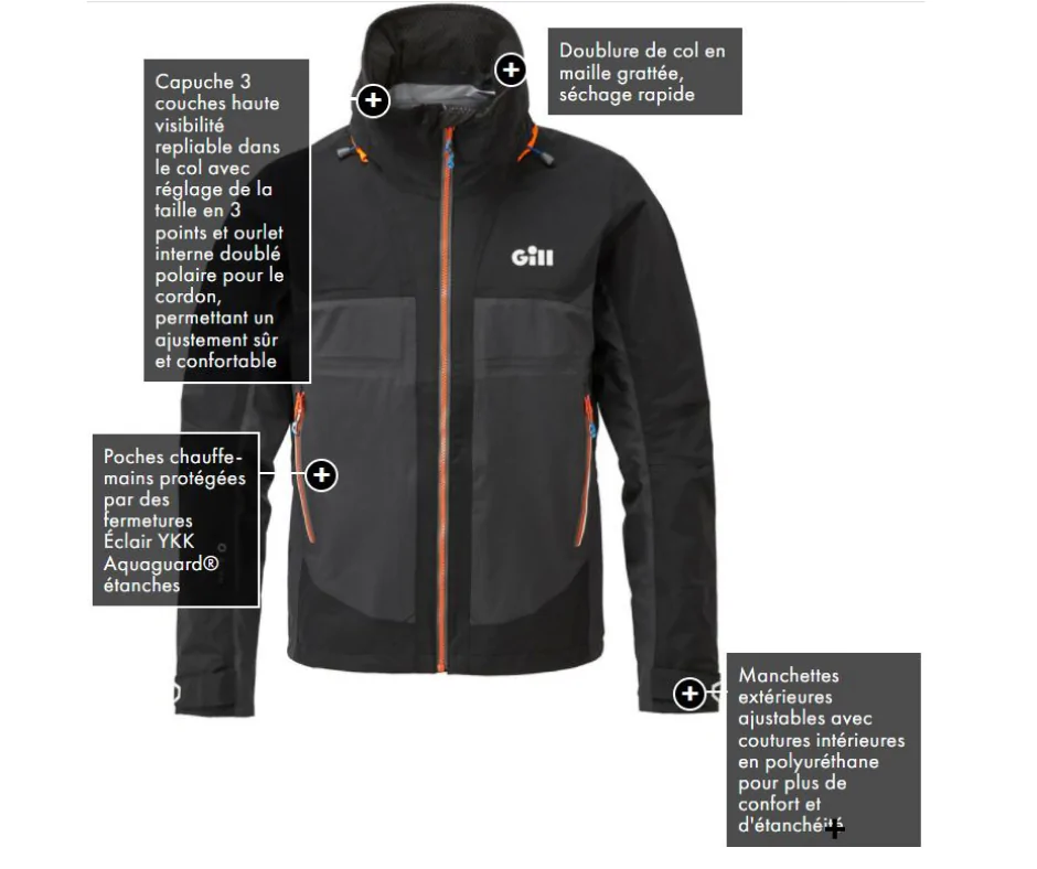 Les coutures intégralement thermo-soudées et le zip YKK AquaGuard renforcent l’étanchéité de cette veste Gill. Elle a été éveloppée pour garantir une grande liberté de mouvement, du confort sans négliger la protection.